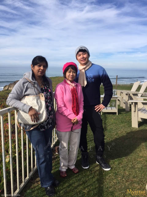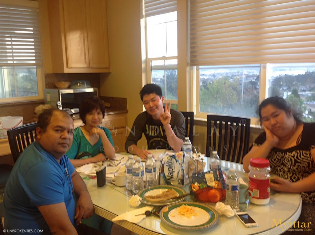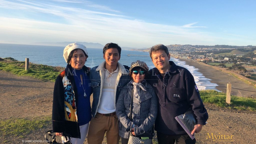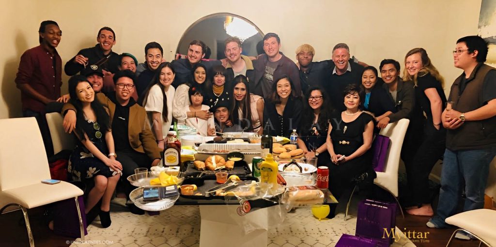 SOUTH SAN FRANCISCO, CA - The First Myittar team at Mandalay Heights residence South San Francisco with Ko Mike Min Min (DP), Mary K. Yap (Author and Writer), Francis (Actor), and Kyin Nar Aye (PM), happily posing together.