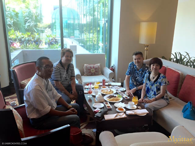 YANGON, MYANMAR - Meeting with Ko Nay Naw (a popular novelist and award winning screenplay writer) @ Sedona Hotel to discuss future collaborations (L to R) Ko Nay Naw, Director Wyne, Mr. Peter Yap (Producer and E.P.) and Mary K. Yap (Author and Writer).