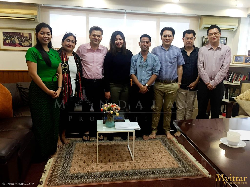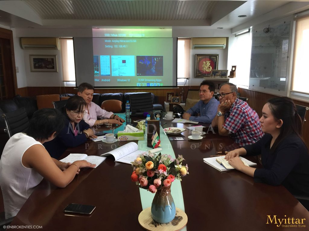 YANGON, MYANMAR - Under the leadership of Su Sandar and Meme Lwin, the Mandalay Productions staff met with Chairman Zin Wine and the Myanmar Motion Picture Organization (MMPO) to plan a nationwide survey, 'Myanmar Film: Are they for me?' aimed at understanding moviegoers’ preferences before producing charity Myittar.