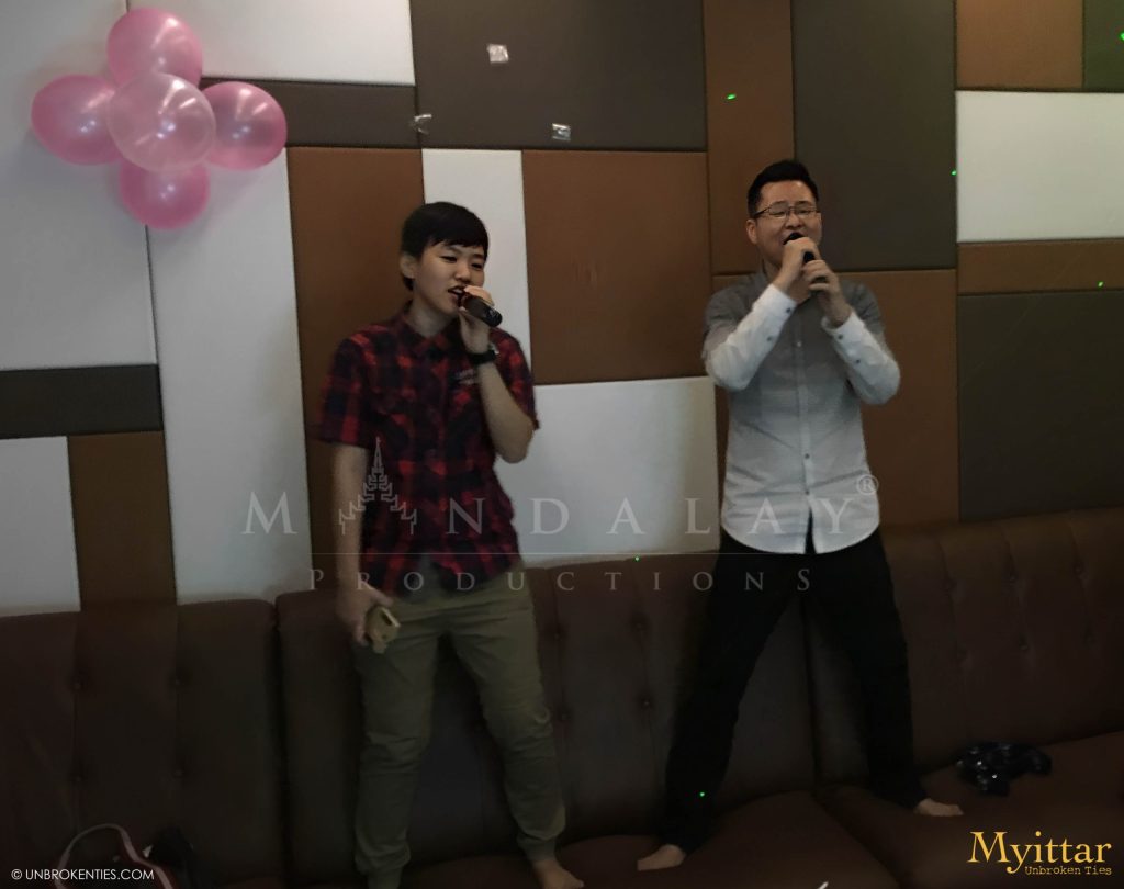 YANGON, MYANMAR - MP's Production Manager, Philip Wong, takes a break at the local Karaoke to sing a lively duet with TeTe (Graphic Designer), entertaining colleagues and creating a fun, memorable moment during the office outing.