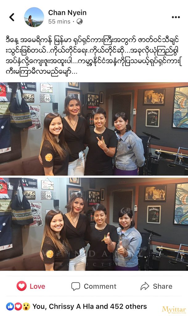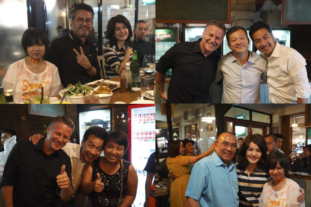 YANGON, MYANMAR - MP Staff led by Sue and Meme join Myanmar’s favorite artist singer, Chan Chan after her stage performance. The team discussed future collaborations to support US-Myanmar Joint Productions Charity Film Project, Myittar.