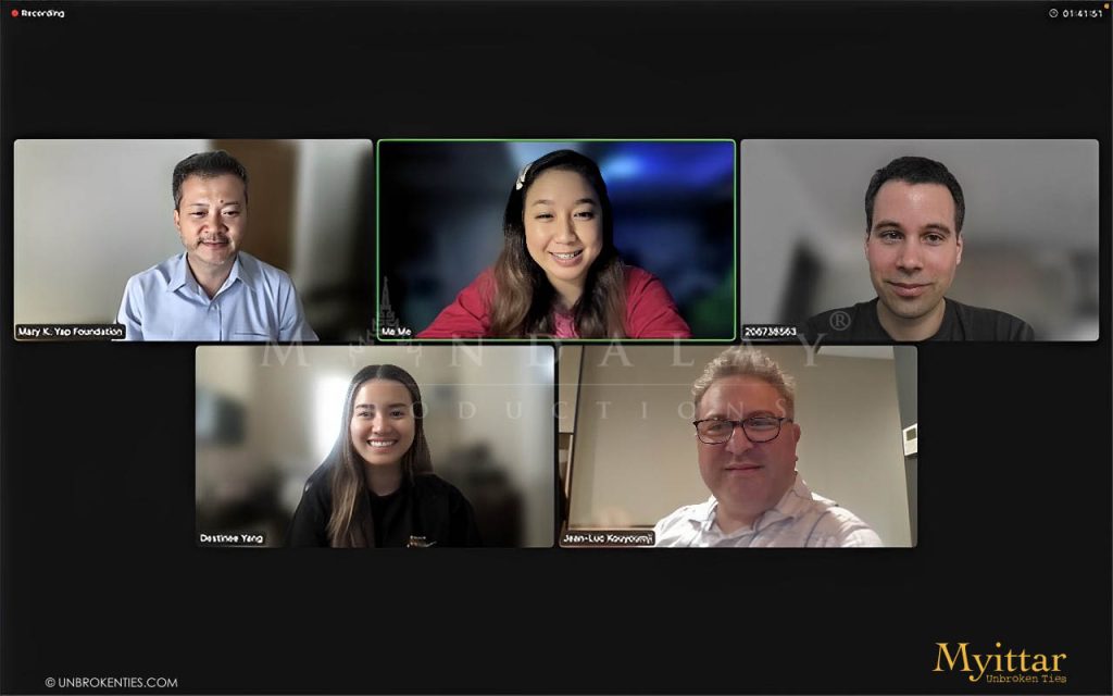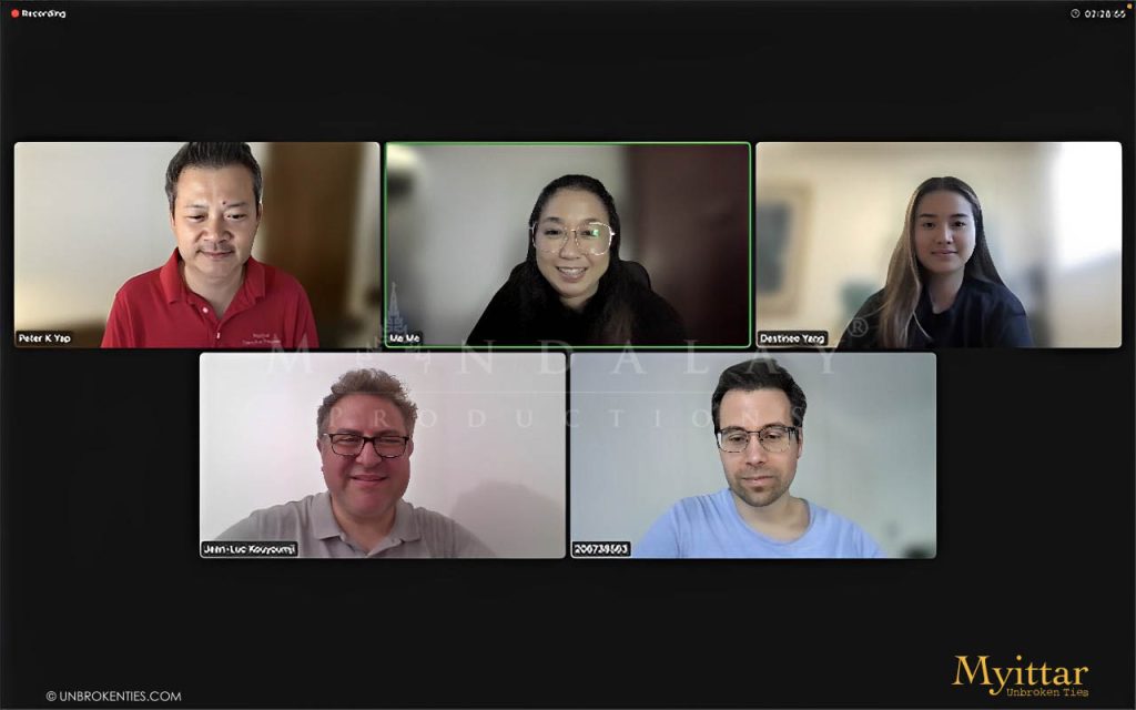 ZOOM CALL - Mandalay Productions takes immense pride in collaborating with the appointed sales agent company, Daehan Drama Ltd of London. Together, we engage in discussions concerning the participation of the 'Myittar' film in prestigious international festivals. We sincerely appreciate having a distinguished guest, Board Member Jean Luc Kouyoumji from the Mary K. Yap Foundation, our nonprofit beneficiary for the 'Hope for Orphan' project, join our Zoom discussion, lending invaluable insights and support to our endeavor.