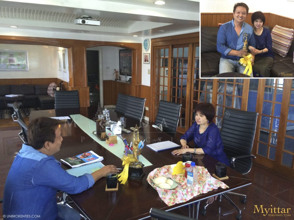 YANGON, MYANMAR - First time meeting with beloved Academy Award Winner Legendary Academy Award Actress Swe Zin Htaik and Screenplay Writer Nway Nway at the MP offices to discuss future collaborations for the making of the Charity Film “Myittar.”
