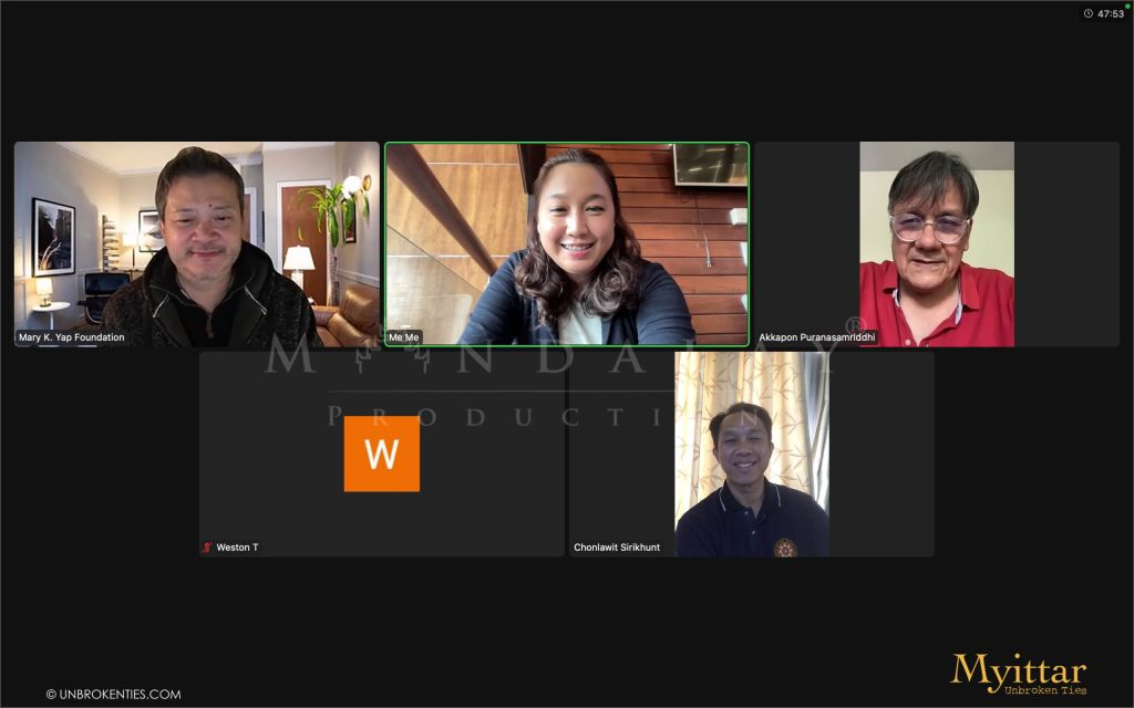 Amidst the formidable challenges of the COVID-19 pandemic affecting post-production of our charity feature film, the Mandalay Productions teams in Myanmar and the United States demonstrated remarkable resilience by staying connected through Zoom and were honored by a visit from our esteemed Chief Advisor, Aunit Thet, who brought her wisdom, warmth, and heartfelt greetings to our Yangon office.